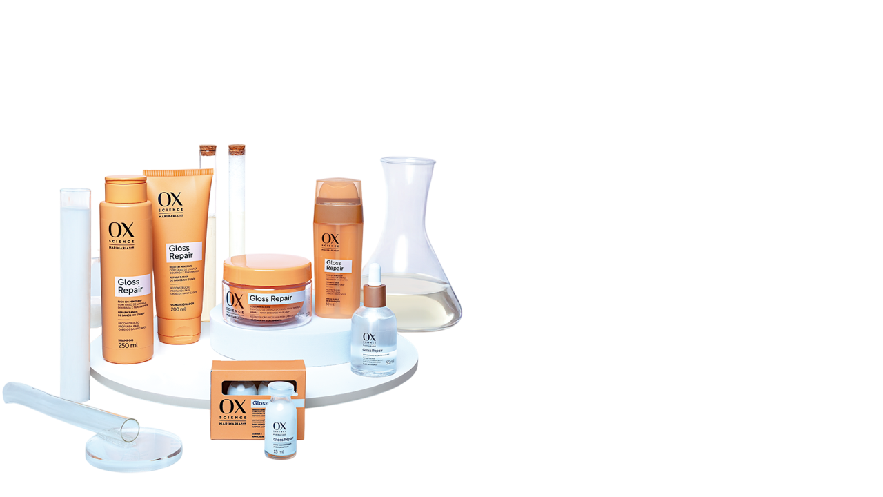 Para finalizar os cabelos, aplique o Óleo Acetinado OX Science Gloss Repair de 3 a 6 gotas nas palmas das mãos e distribua nos fios secos ou úmidos, concentrando no comprimento e pontas.